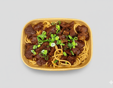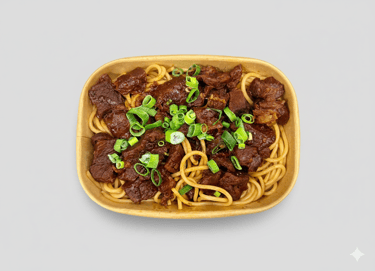 Fideos salteados con ternera ,huevo y verduras de temporada